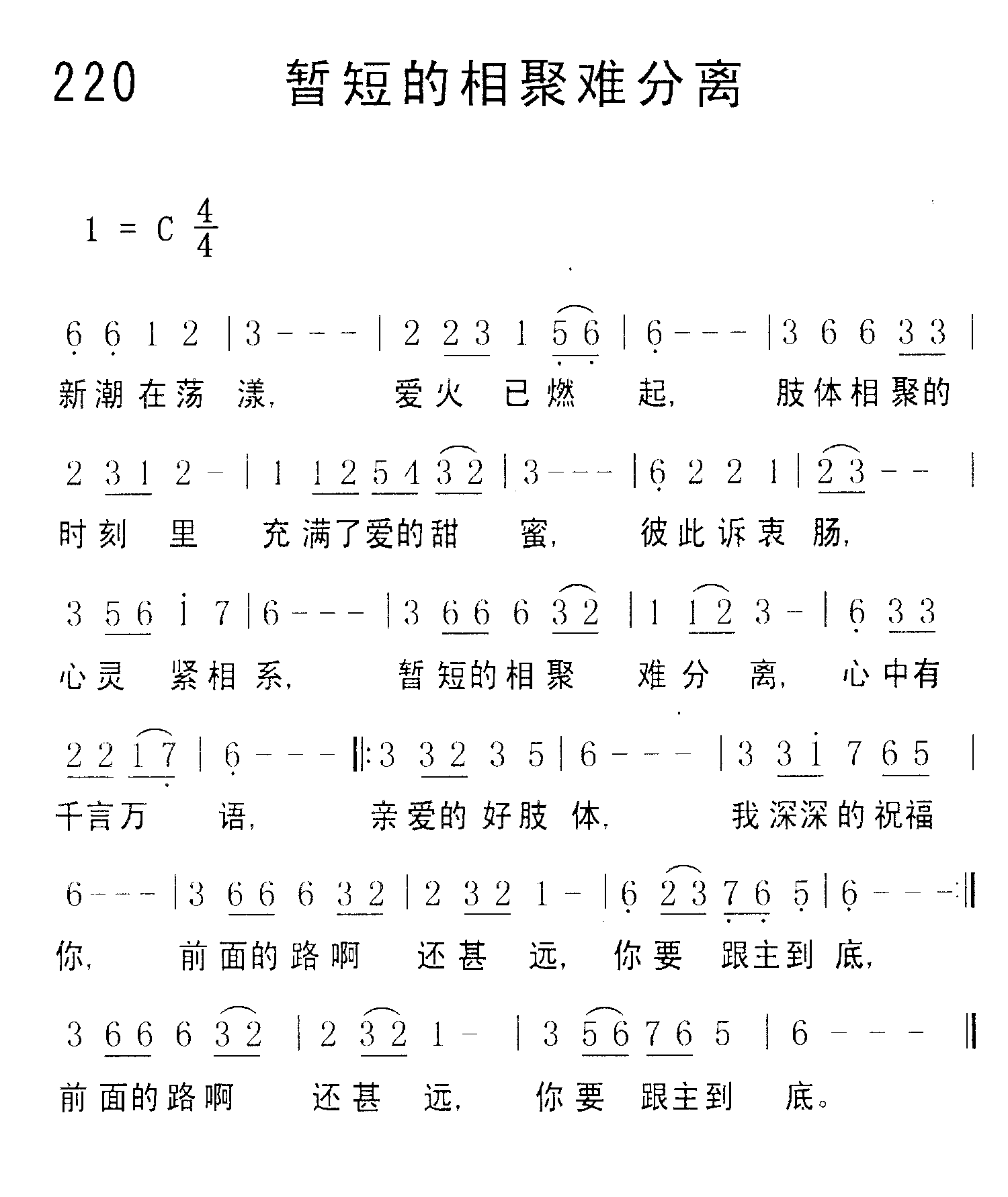 第220首 - 暂短的相聚难分离