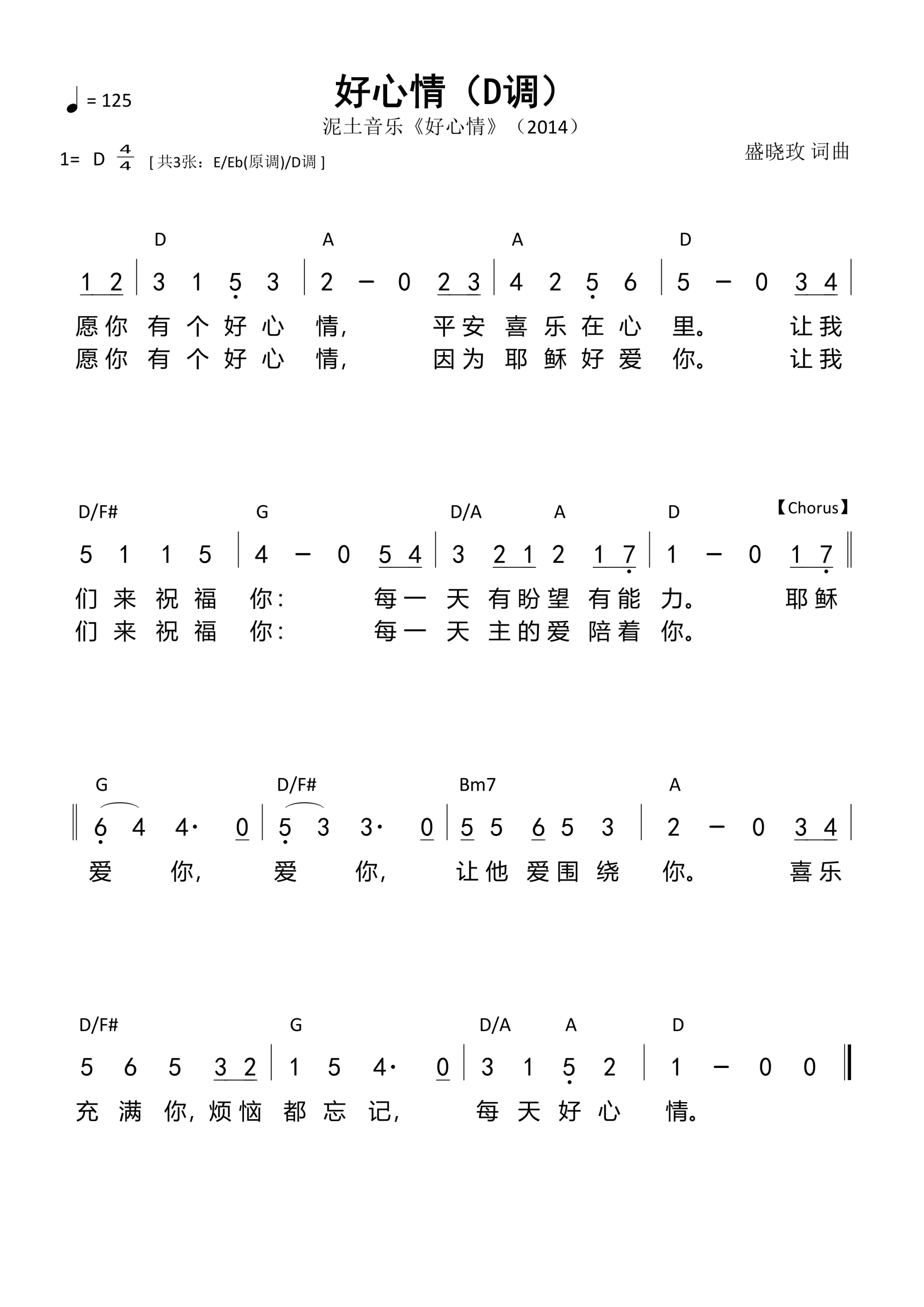 第540首 -好心情(D调)和弦简谱