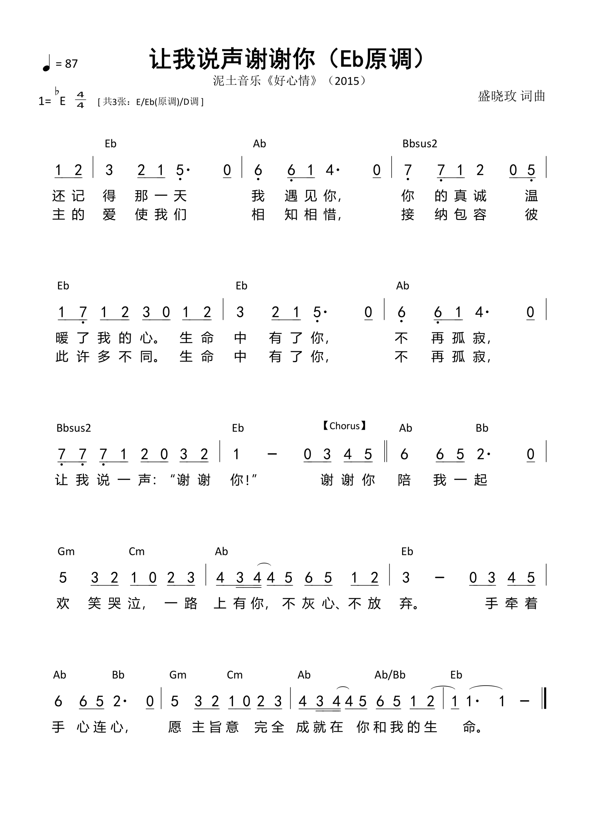 第542首 - 让我说声谢谢你(Eb原调)和弦简谱