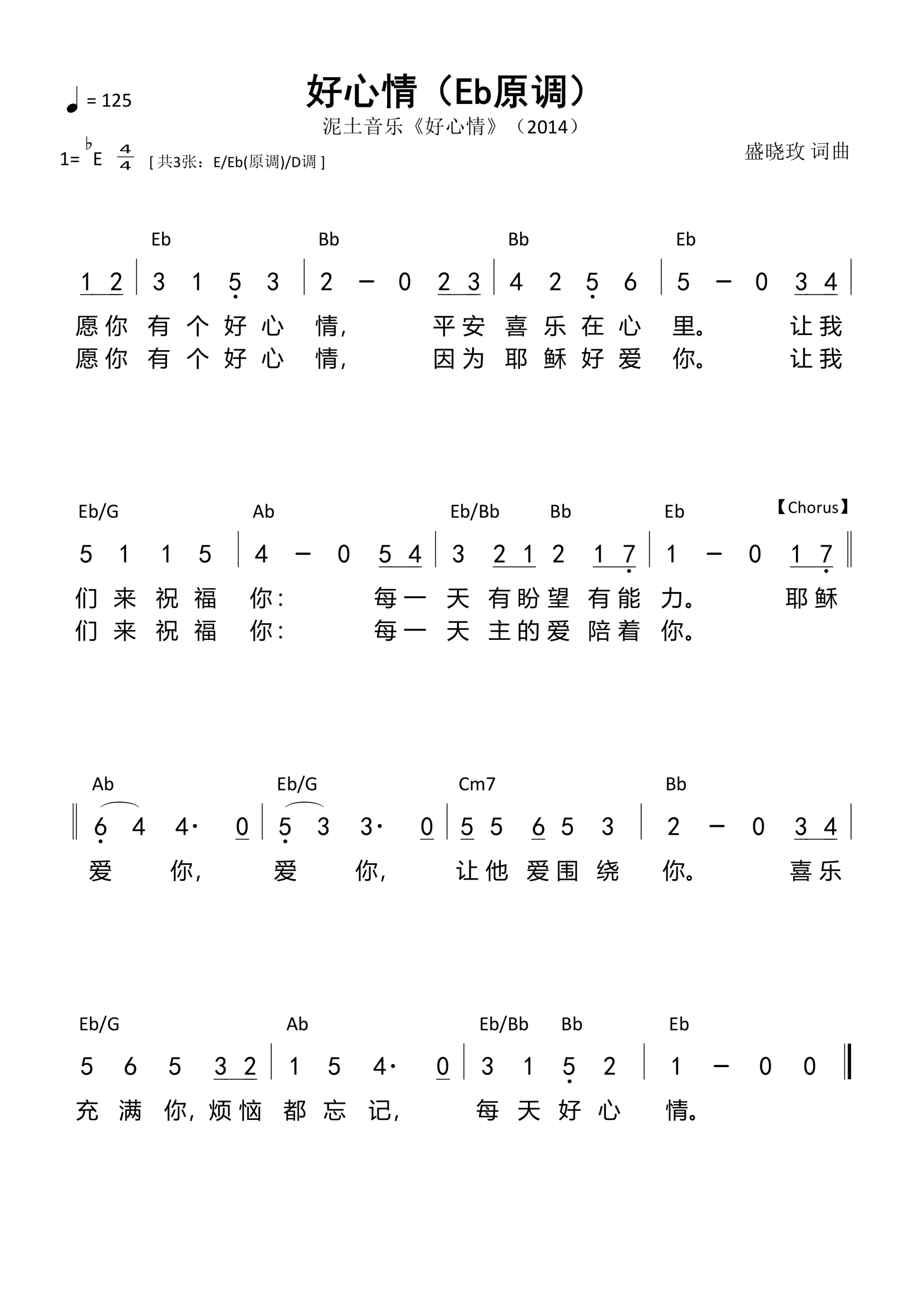 第1504首 - 好心情(Eb原调)和弦简谱