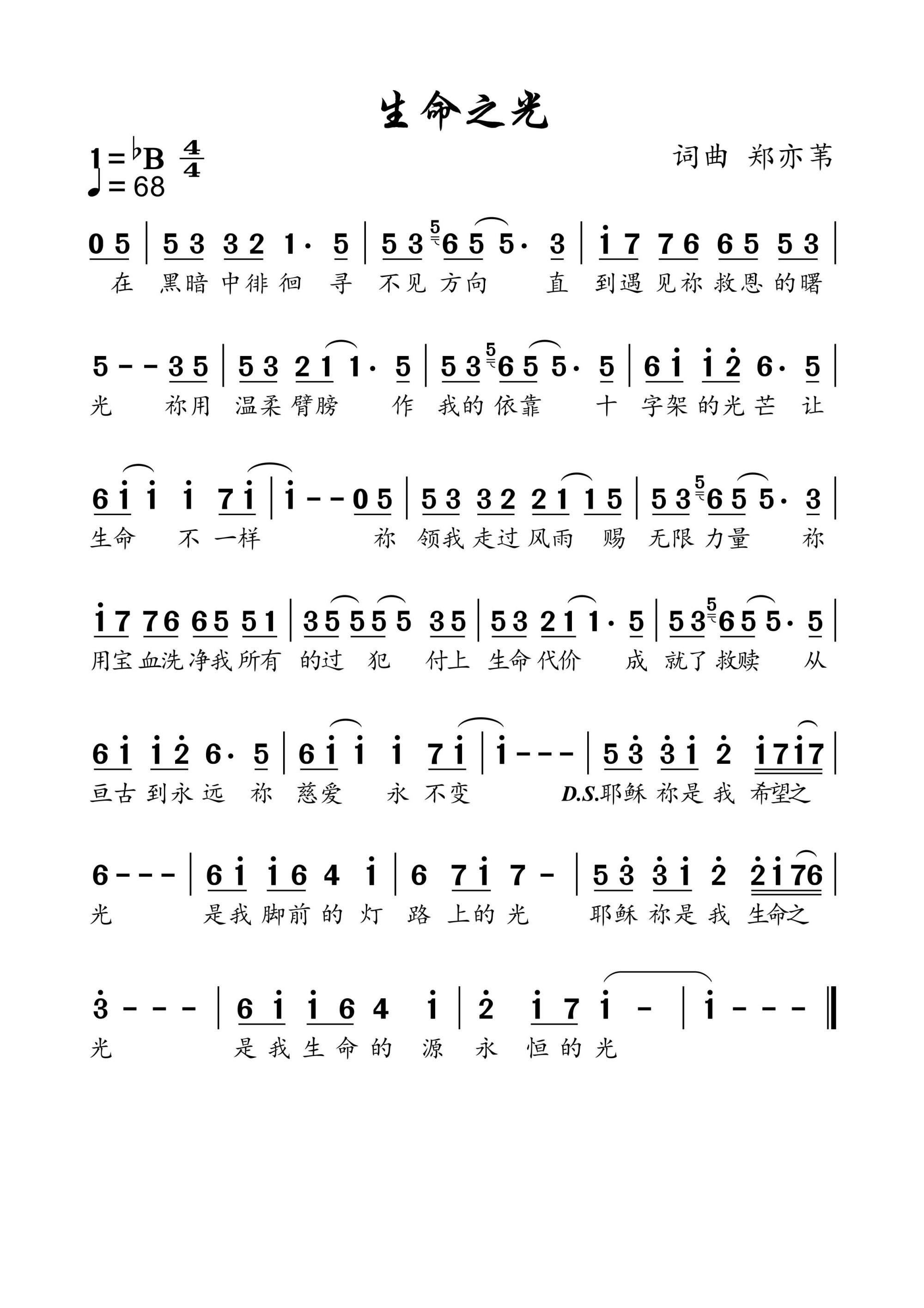 生命之光 官方简谱